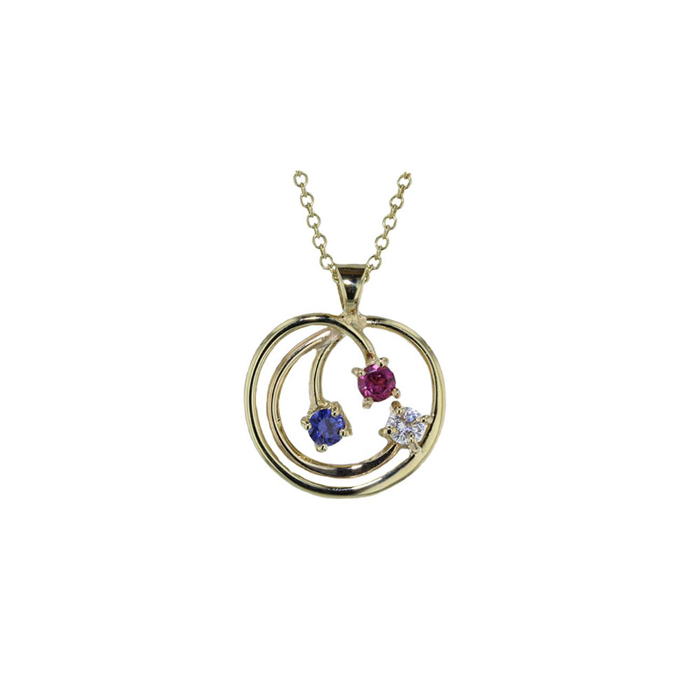9ct gold birthstone – gemstone pendant, hand-forged in 9ct gold, beautiful personalised necklace pendant for the mother figure in your life.