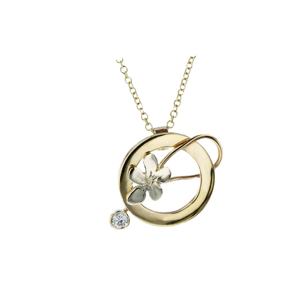 9ct Yellow and White Gold Pendant with Burren Flower and CZ