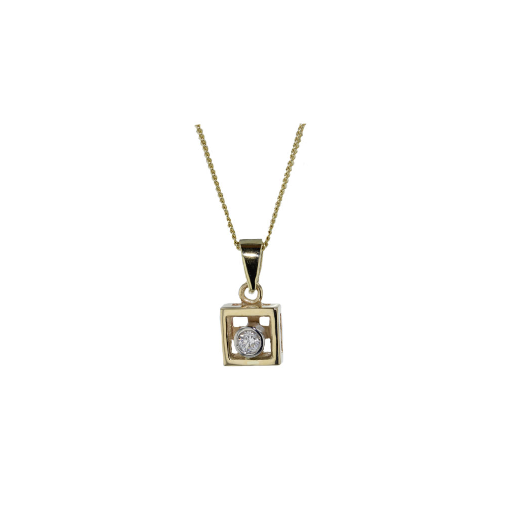 9ct solid yellow gold box with 0.10ct bezel set diamond in white gold. A timeless piece perfect to mark any occasion.