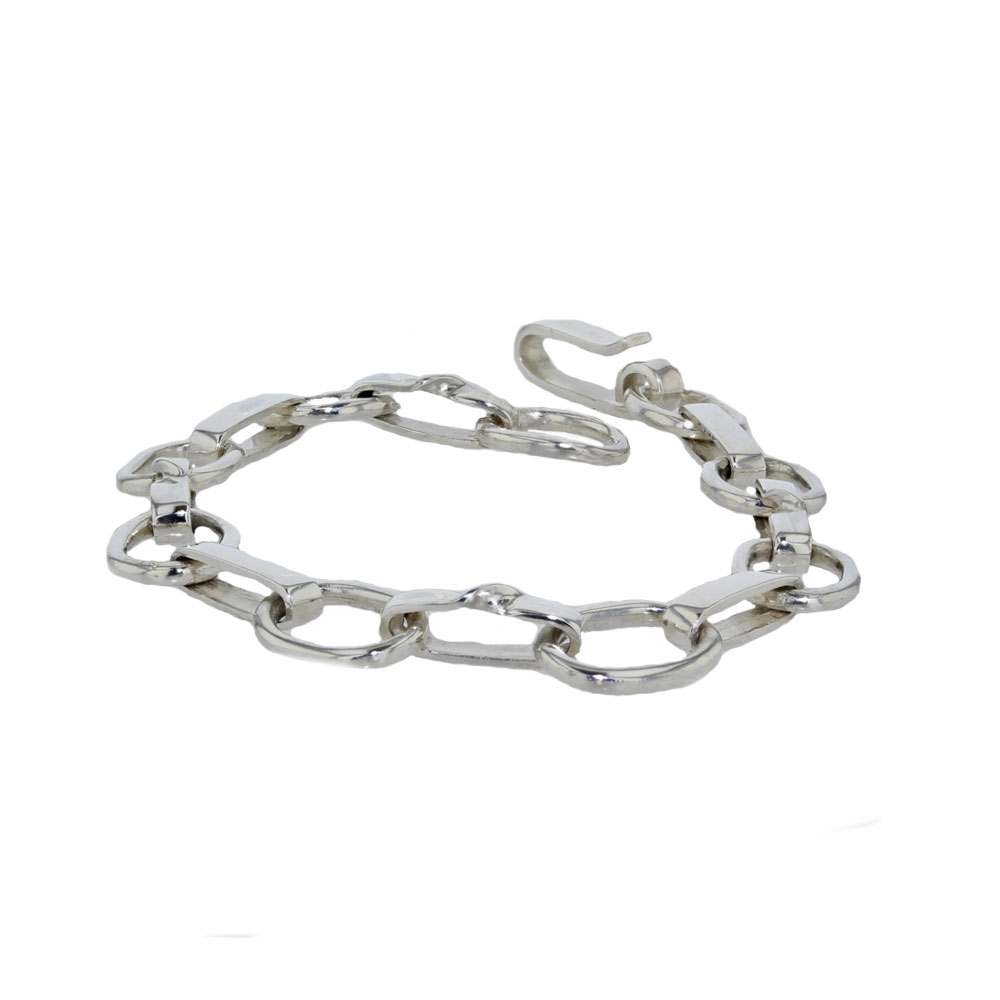 Handmade Sterling Silver Flat Link and Oval Bracelet