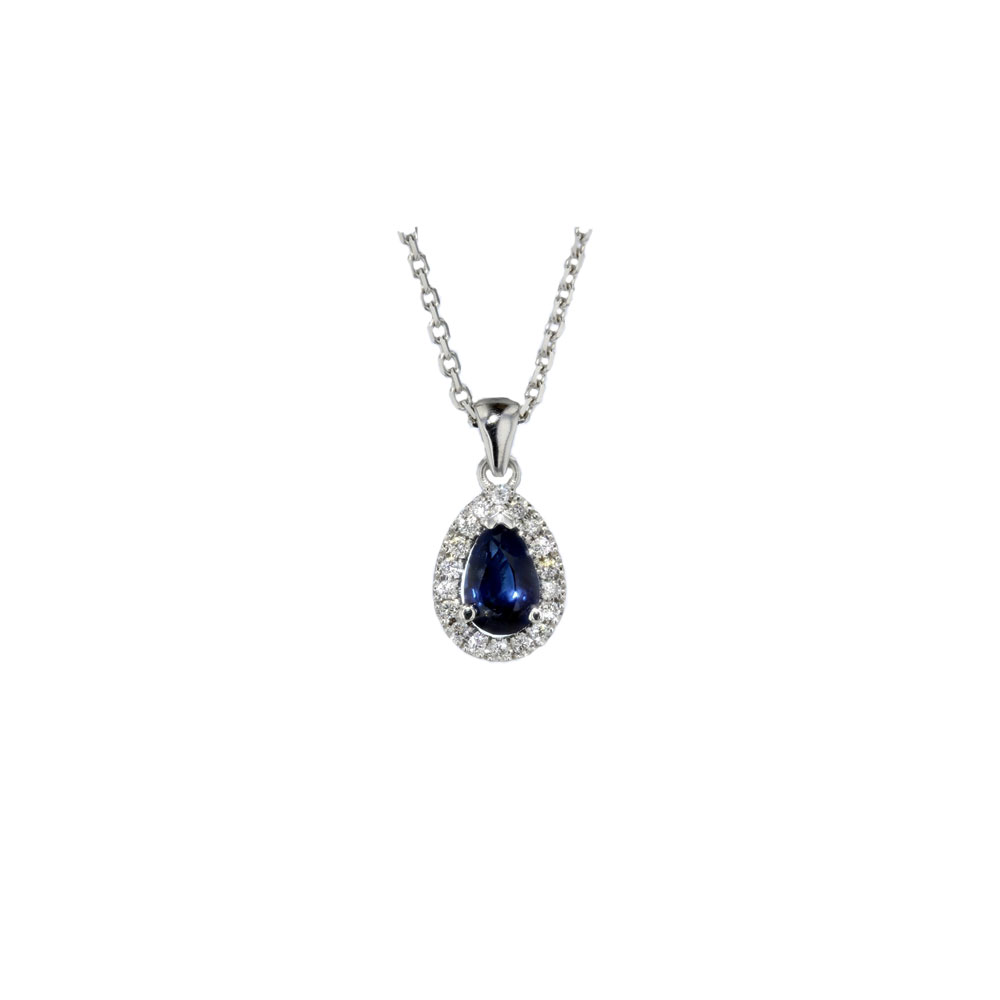 Pear Shaped Sapphire & Diamond, 18ct White Gold Pendant