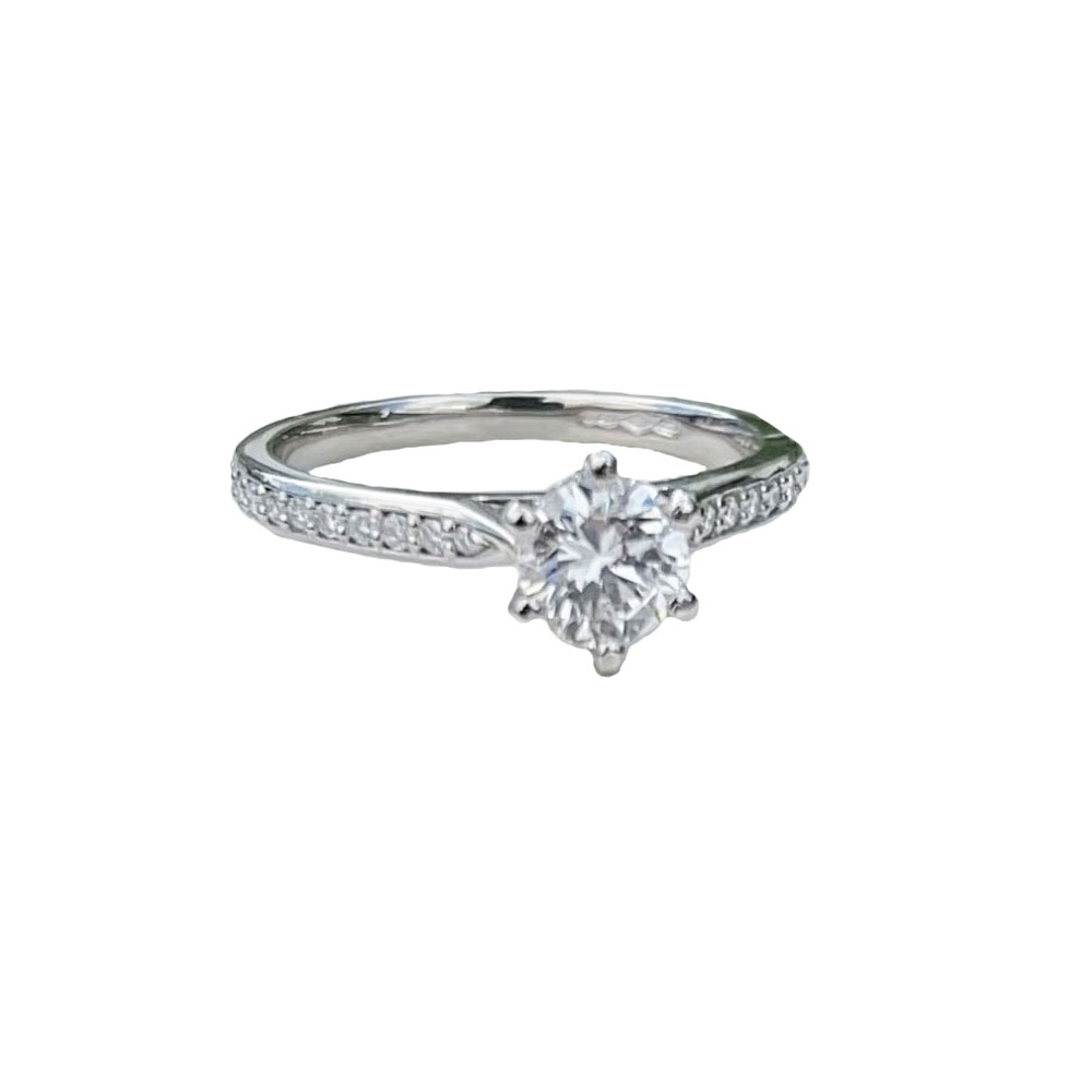 Platinum 6 Claw Solitaire Ring 0.85ct with Diamond set Shoulders