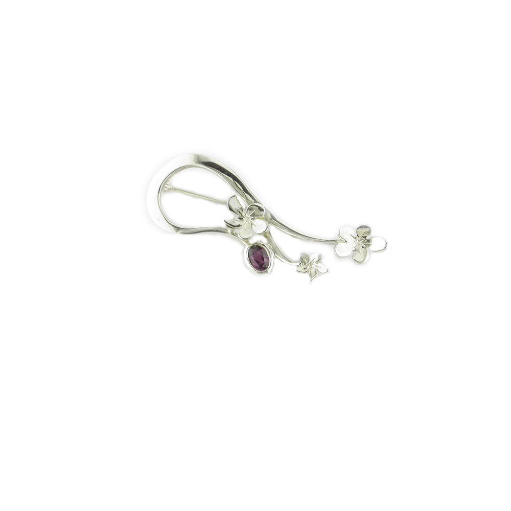 Sterling Silver Brooch set with Rhodolite Garnet