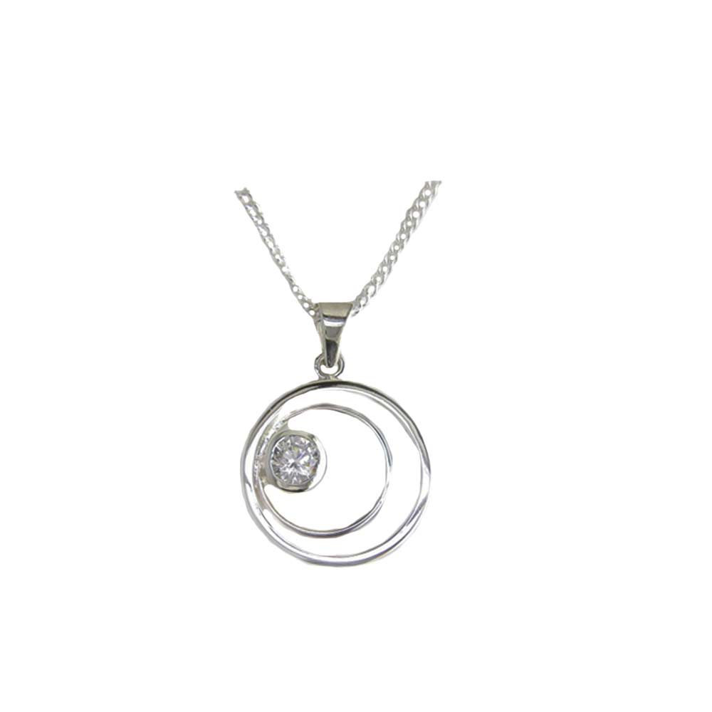 Sterling Silver Circle of Life Bezel set Stone Pendant with Clear Zircon.