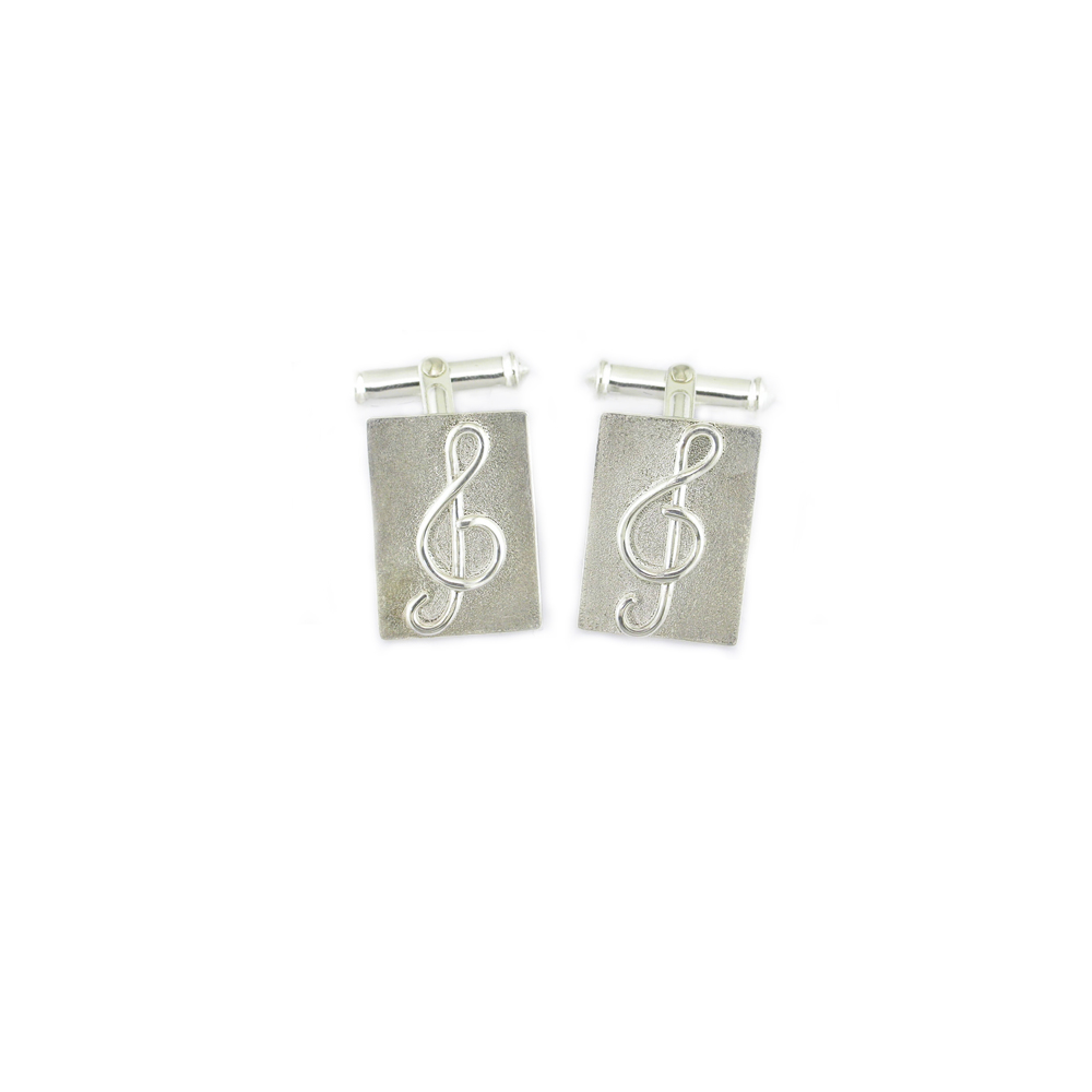 Sterling Silver Treble Clef Cufflinks with Textured Background.
